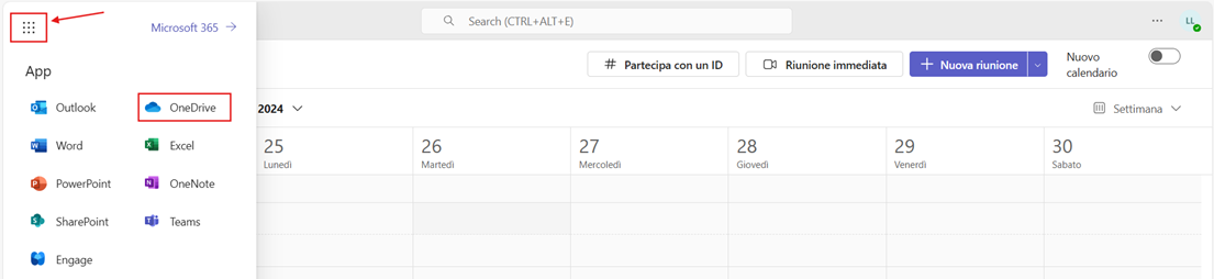 in alto a sinistra e nella finestra a comparsa cliccare sull’icona di One Drive.